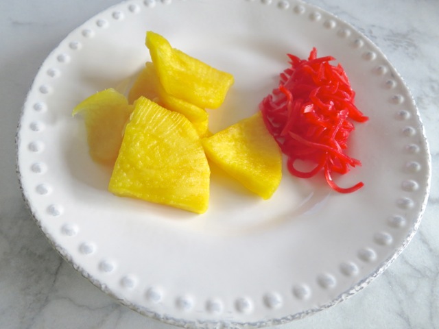 Takuan and red ginger.