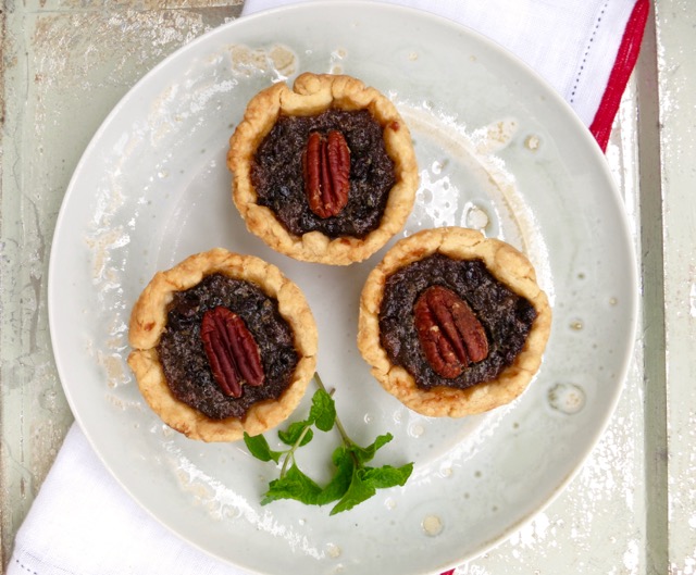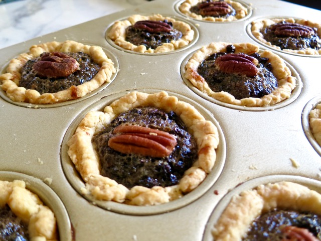 Topping each tart with a pecan seals the deal.  They are perfectly toasted after being in the oven for 30 minutes.