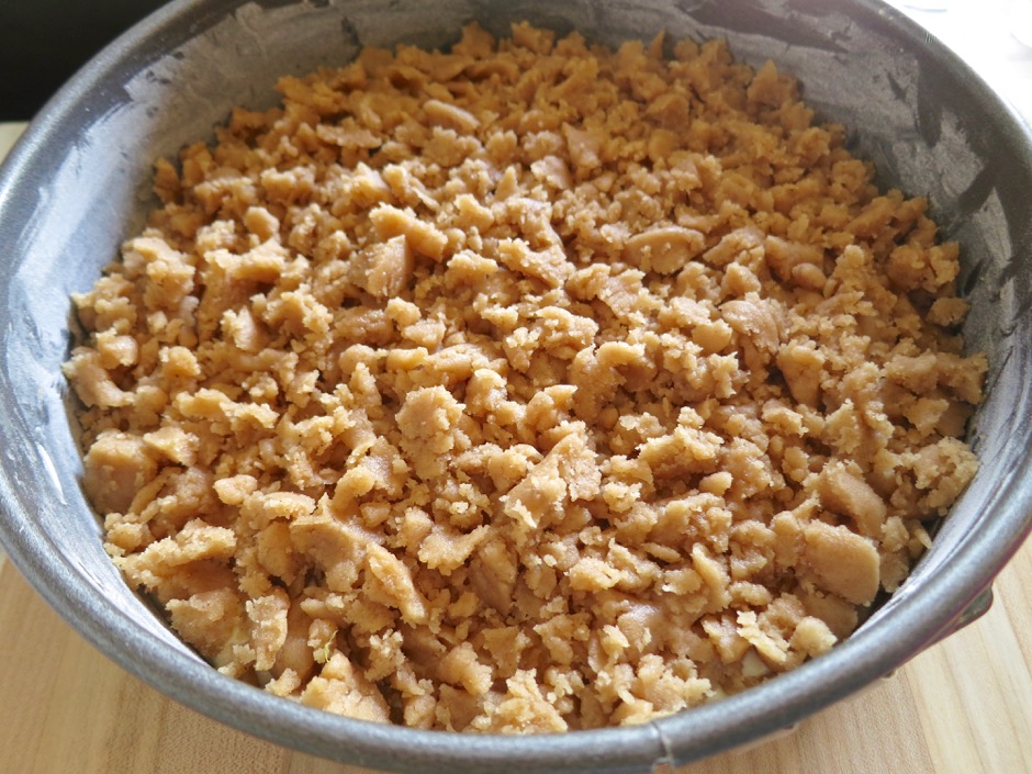 - Spoon the batter into the prepared pan and speed it out with a spatula. With your fingers, crumble the topping evenly over the batter. It may seem as though there is too much streusel, but keep sprinkling until you use it up!