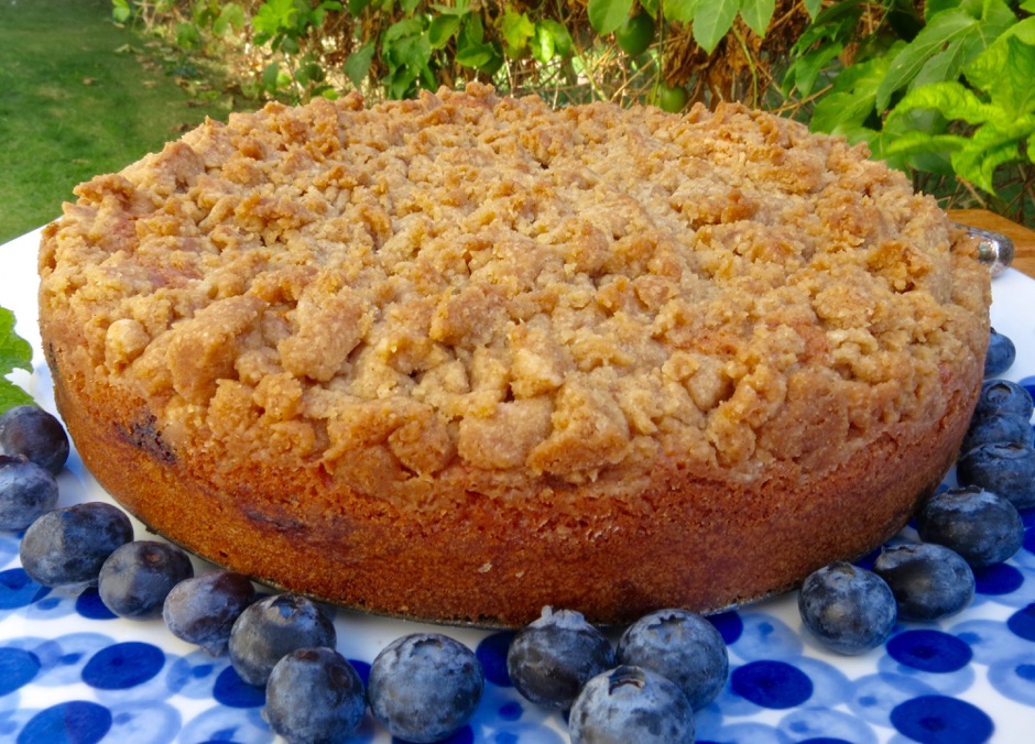 Like many others, I am a fan of Ina Garten’s recipes. I miss her Barefoot Contessa cooking show on Food Network. The cooking channels seem to have cancelled their actual cooking shows such as Ina’s. These days, you’re hard pressed to find such a show though there is no shortage of reality/competitive cooking shows. Now on to Ina’s blueberry crumb cake! Blueberries are plentiful and so now is a great time to make this cake. My version uses lactose free ingredients but go ahead and use regular sour cream and butter if you get along with them just fine.