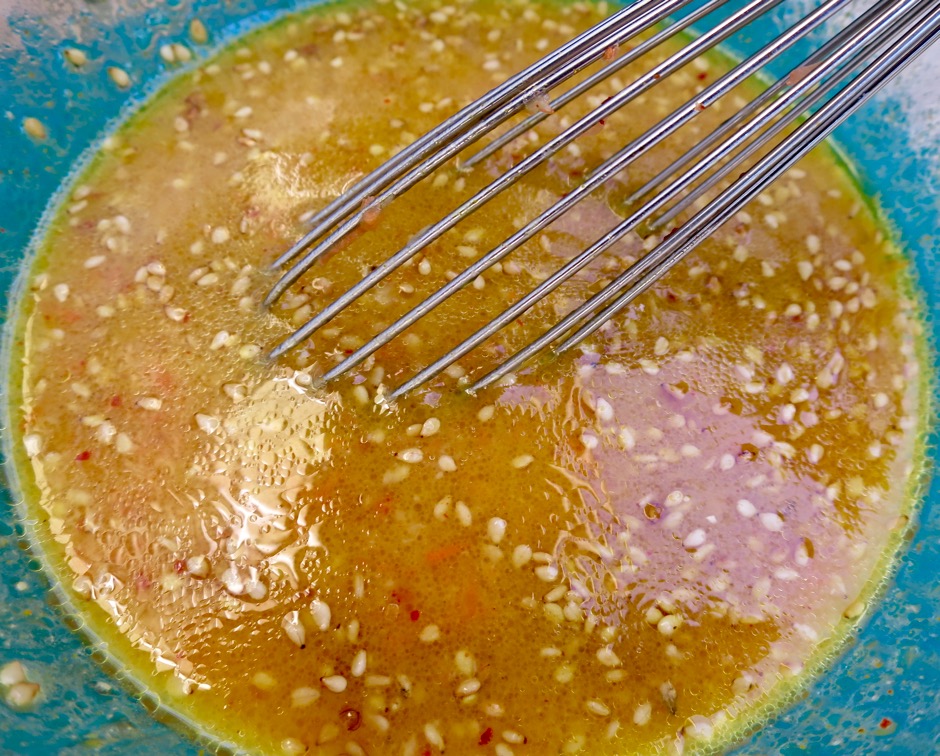 The dressing can be prepared in less than 10 minutes. All the ingredients are whisked together in a small bowl. That’s it! It will keep nicely in the refrigerator for 3 – 4 days.
