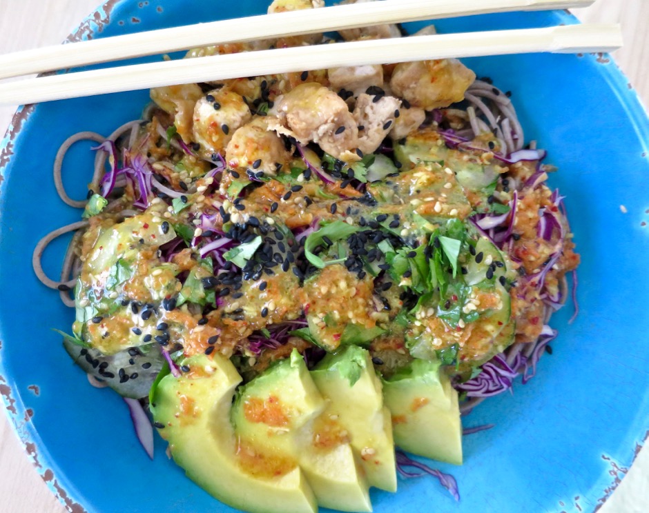 This is a beautiful and versatile dressing. It’s delicious with chopped iceberg lettuce and cucumbers, or drizzled over a crisp watercress salad. It’s the perfect match for a cool summer soba salad with finely shredded red cabbage and pan-fried tofu.