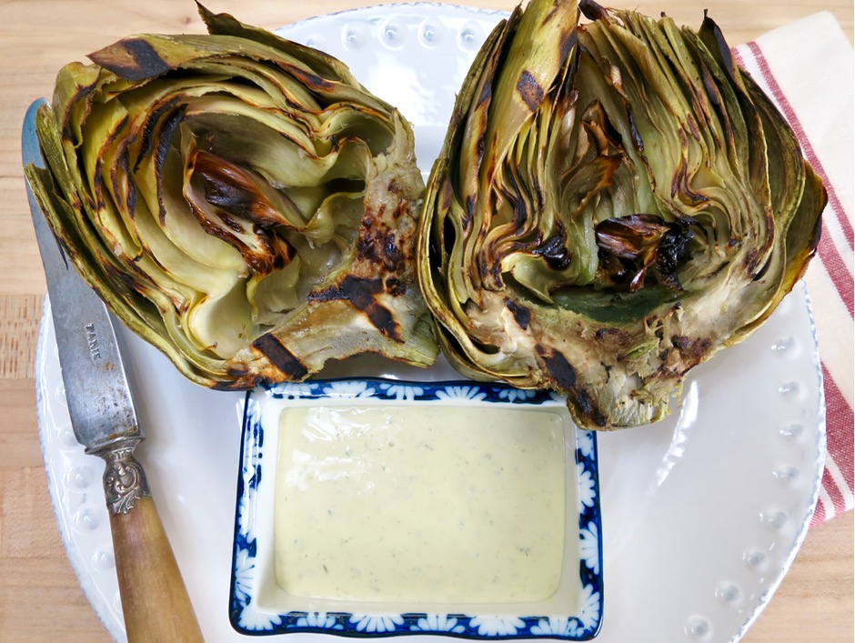 Nobis dressing for dipping grilled artichokes. It’s also delicious drizzled over steamed asparagus.