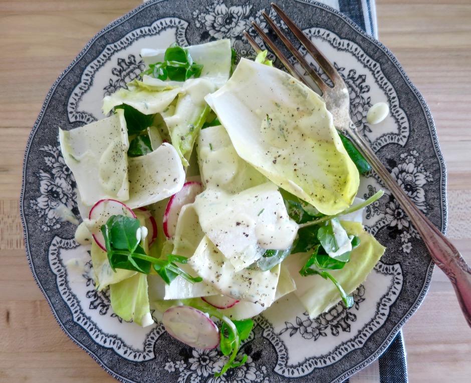 San Francisco is a city that offers superb dining options. We look forward to returning to our favorite restaurants year after year. While always visiting our favorite places, we enjoy trying new restaurants as well. On our last visit we tried Volta, a French restaurant with Scandinavian influences. We went for lunch, and it was just divine so we changed our plans for that night and returned to Volta for dinner. It’s a gorgeous restaurant with a menu that features many appealing dishes. I chose an endive & watercress salad with nobis dressing as my starter. The nobis dressing was absolutely delicious: so much so, I contacted the owner Umberto Gibin and asked for the recipe. He was gracious enough to have his chef pare down the ingredients for me.