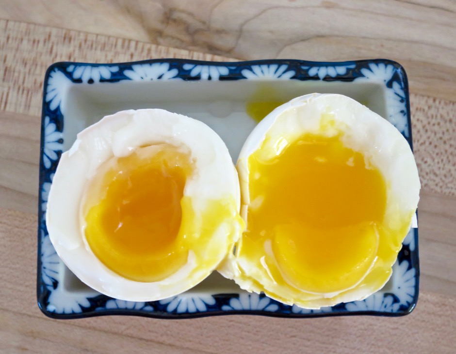 - Place soft boiled egg in a 1-pint mason jar or comparable sized container that your immersion blender fits snugly in.