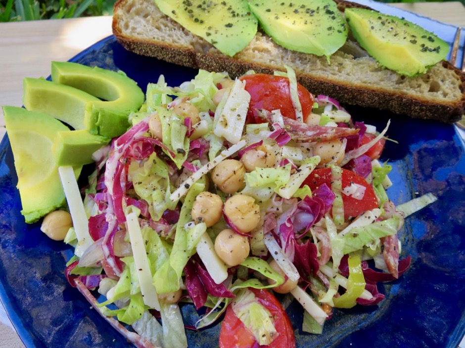 This salad is one you will never get bored with. Crunchy lettuce, tart pepperoncini, wholesome chickpeas, and savory peppered salami, all tossed together with a refreshing oregano vinaigrette makes this a perfect lunch. I love serving it with slices of hearty sourdough bread or avocado toasts. There are many fine chopped salad recipes but this one created by Nancy Silverton and published in The Mozza Cookbook is by far my favorite. This beautiful salad will bring much satisfaction to whomever you share it with.