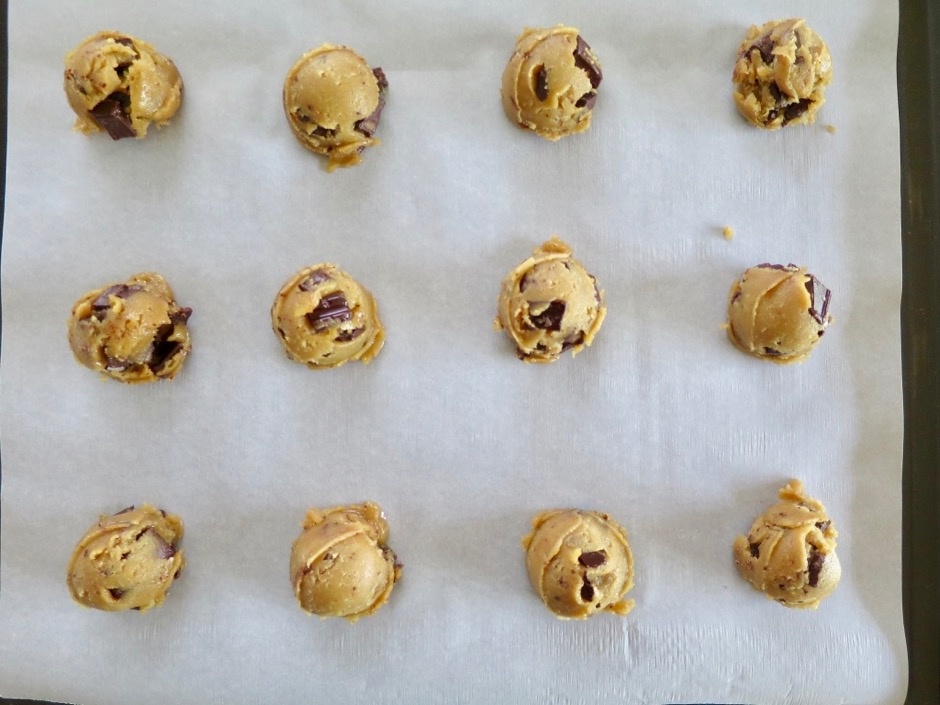 David recommends using chocolate chunks. I bought chocolate bars and chopped them into pieces larger than regular chocolate chips which are fairly small and tend to get lost in a cookie. David’s recommendation was spot on. Who wouldn’t want more chocolate in every bite?!