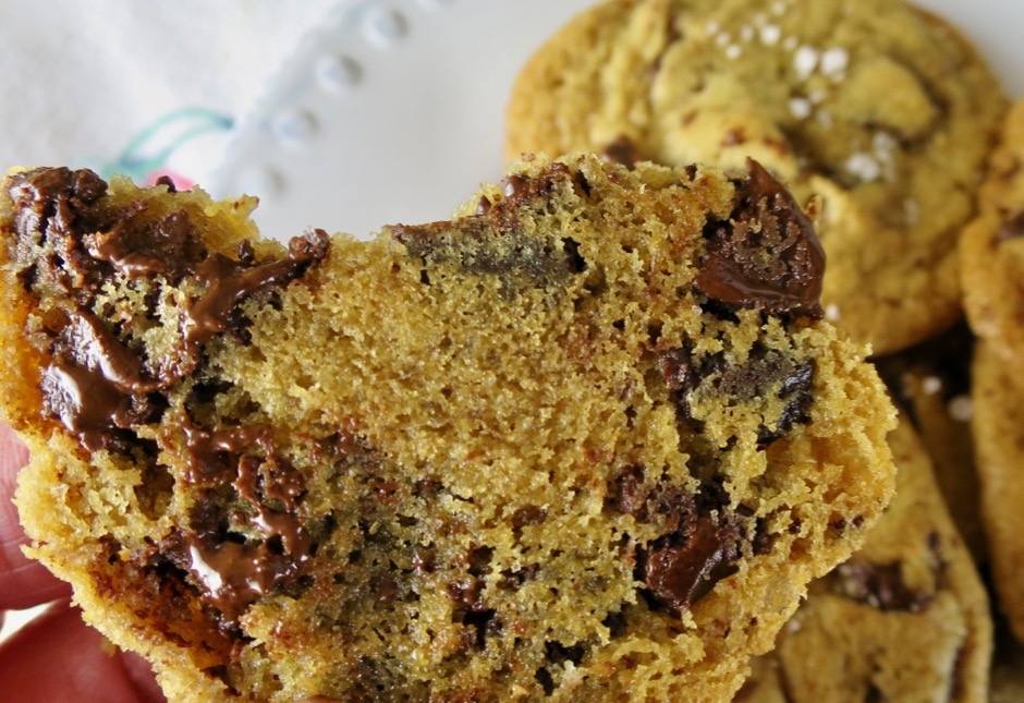 I was intrigued by this chocolate chip cookie recipe after David Lebowitz raved about it on his blog. A chocolate chip cookie made with tahini? This was a recipe I needed to try for myself. I love tahini and have often used it in savory recipes such as hummus or dressing. After doing a bit of research I found that it is not uncommon to use it in desserts as well. These cookies are the best of both worlds. They are delightfully rich with just a hint of tahini and lots of chocolate in every bite. The fleur de sel is the “icing on the cake.”