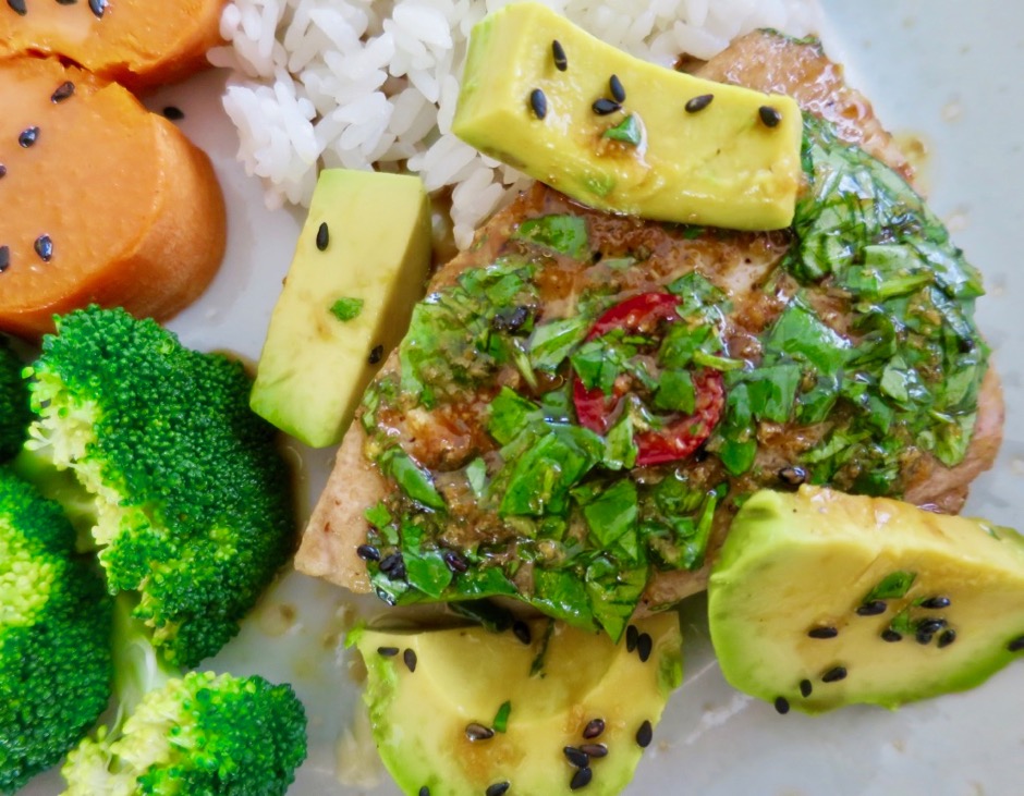 Sometimes I serve steamed bok choy with the ahi, and other times a green salad or baked sweet potatoes and broccoli. I always have a pot of Japanese white rice to go along with this dish.