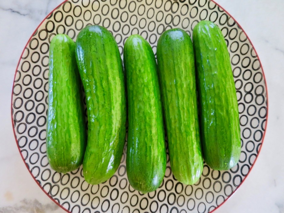 Use thin-skinned cucumbers such as Keiki Cukes (found locally in Hawaii) or Japanese, Persian, or even English cucumbers. Cucumbers with few seeds are what you are looking for.