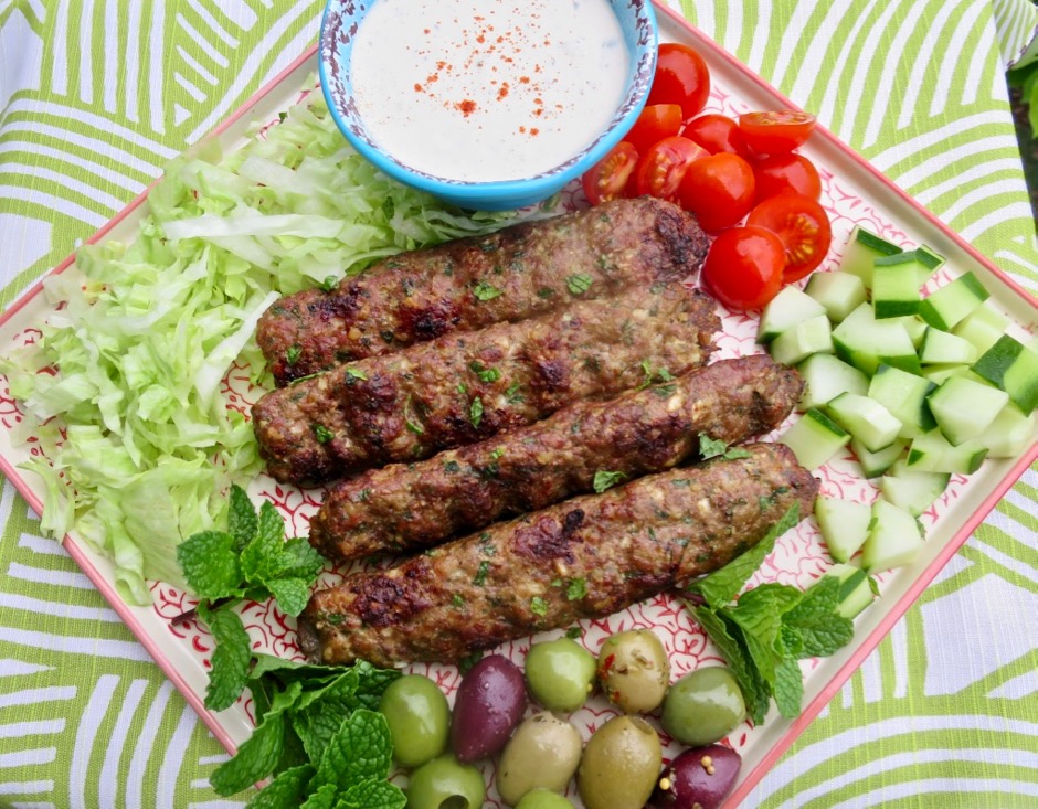 I don’t recall where I got the inspiration for these delicious Middle Eastern kebabs.  I’m always looking out for new recipes so it was probably in a magazine or surfing the internet.  In any case, grilled kofta is now one of my favorite dishes.  And, always a plus, they are really quite easy to put together.  Kofta consists of minced meat, usually lamb or beef that is well-spiced and very savory. The meat can be made into patties or meatballs, or put on skewers and grilled above a hot fire.