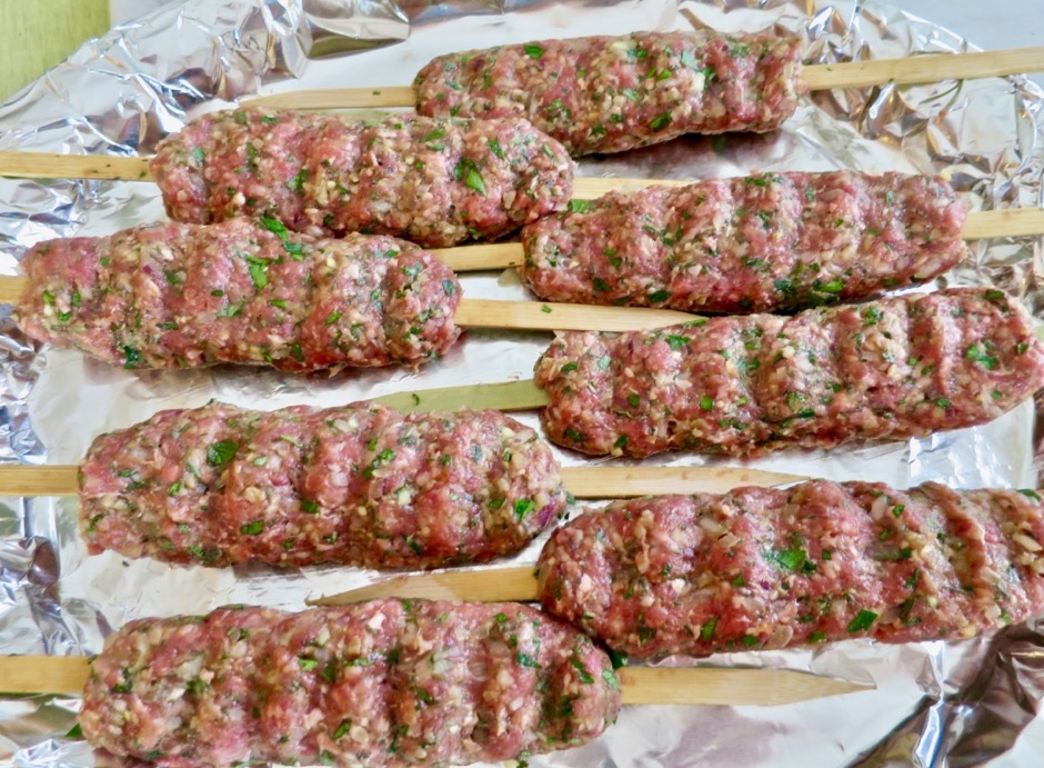 When I mention well-spiced, I don’t mean spicy hot, but exceptionally flavorful.  Ground coriander, sumac, cinnamon, turmeric, cumin all contribute to making the finished kebab one that is so tasty and well seasoned.