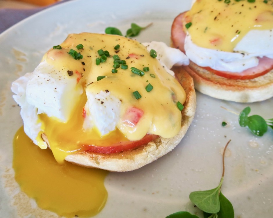 Melted pimento cheese makes a fabulous sauce for Eggs Benedict. I also like to drizzle it over soft scrambled eggs.