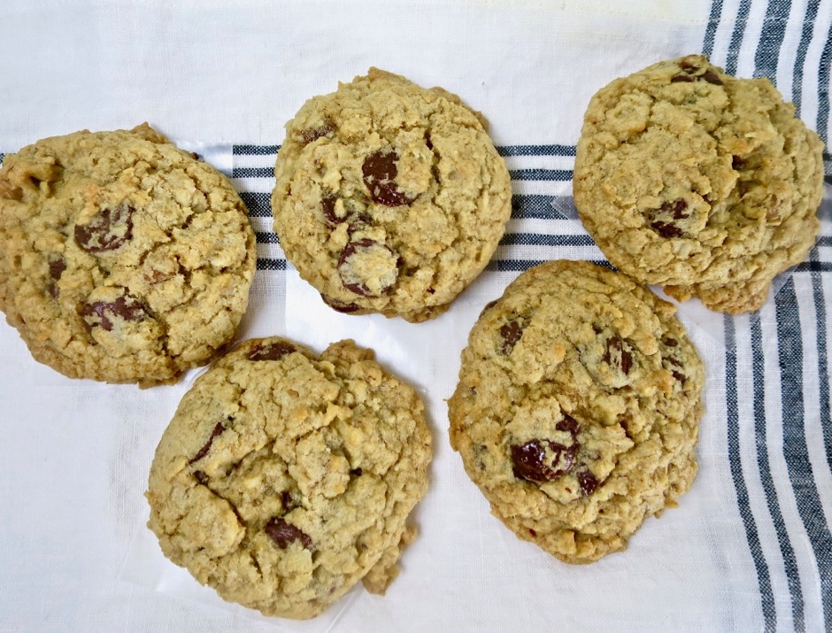 I’m always looking for new, interesting cookies. I stumbled upon these AK Cookies in the late and lamented Lucky Peach magazine. The ingredients seemed like ordinary items you might have in your pantry and I loved the idea of adding shredded coconut to the dough. Turns out these are more than just your ordinary cookies with chocolate, oatmeal and nuts. The coconut adds the je ne sais quoi that turns on otherwise common cookie into something special. This is a cookie that is equally appropriate with your morning coffee or served for dessert along with a scoop of vanilla ice cream.